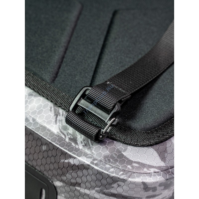 Прочный, износостойкий и водонепроницаемый материал надёжно защитит содержимое вашей сумки от осадков и грязи. Сварные швы и водозащитная основная молния класса IPX7 обеспечивают 100% герметичность. Фронтальный карман имеет влагозащитную молнию! Широкая и мягкая лямка, петля для переноски, съемный сетчатый карман для фляги, возможность подвески снаружи дополнительного снаряжения, внутренний органайзер.